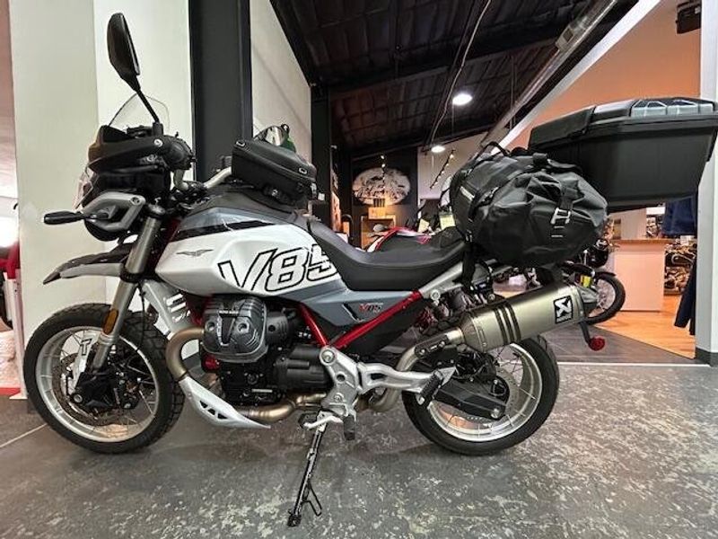 The Moto Guzzi V85 TT Travel is an intrepid explorer that makes no secret of the fact that it’s all about turning every moment in the saddle into a great trip. The standard kit makes that very clear, this includes the protective Touring windshield, heated seat and handles and the rigid side bags with their generous capacity. A comprehensive electronic and multimedia package not only increases riding safety and pleasure but also underlines the bike’s medium- and long-range voyage credentials. It doesn’t matter the distance from the destination, it’s all about the fun getting there.