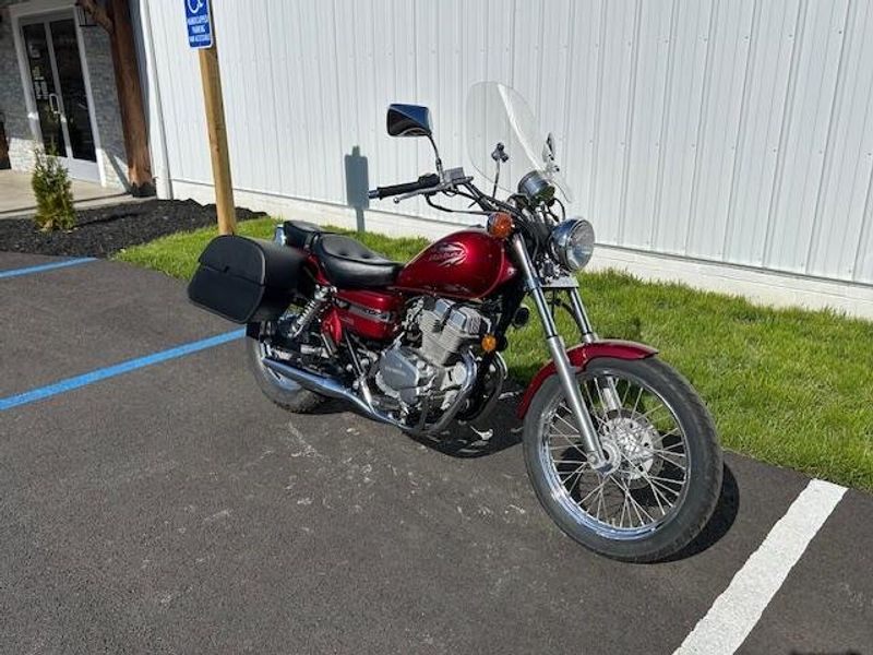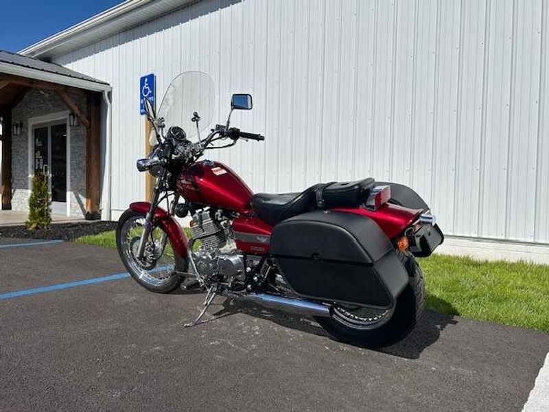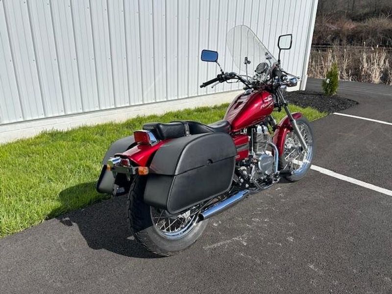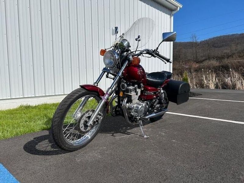 Looks and runs great! Viking saddle bags and aftermarket windshield. Please view our walk around condition video! Great gas sipping commuter or first time rider bike!
