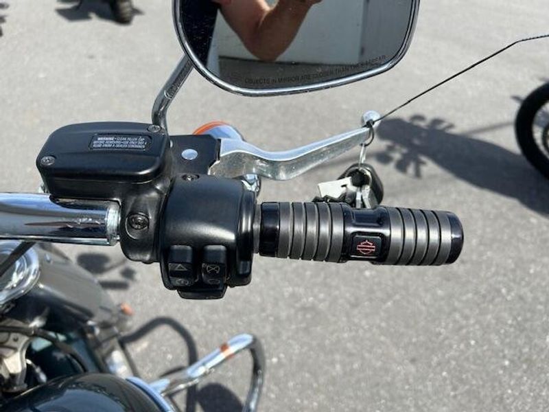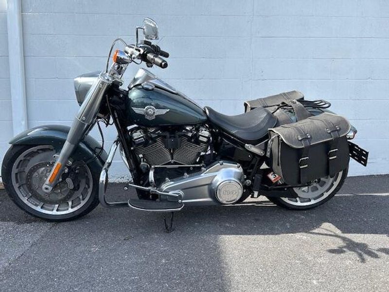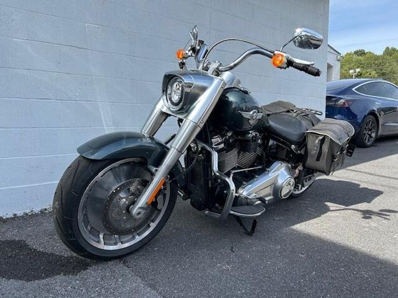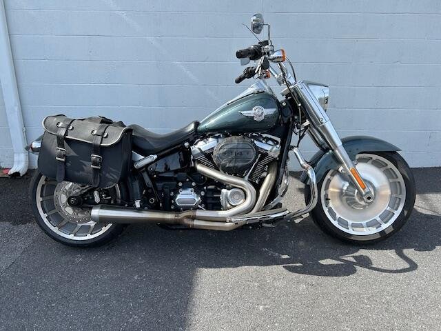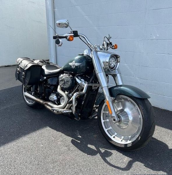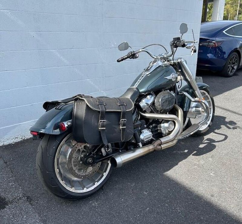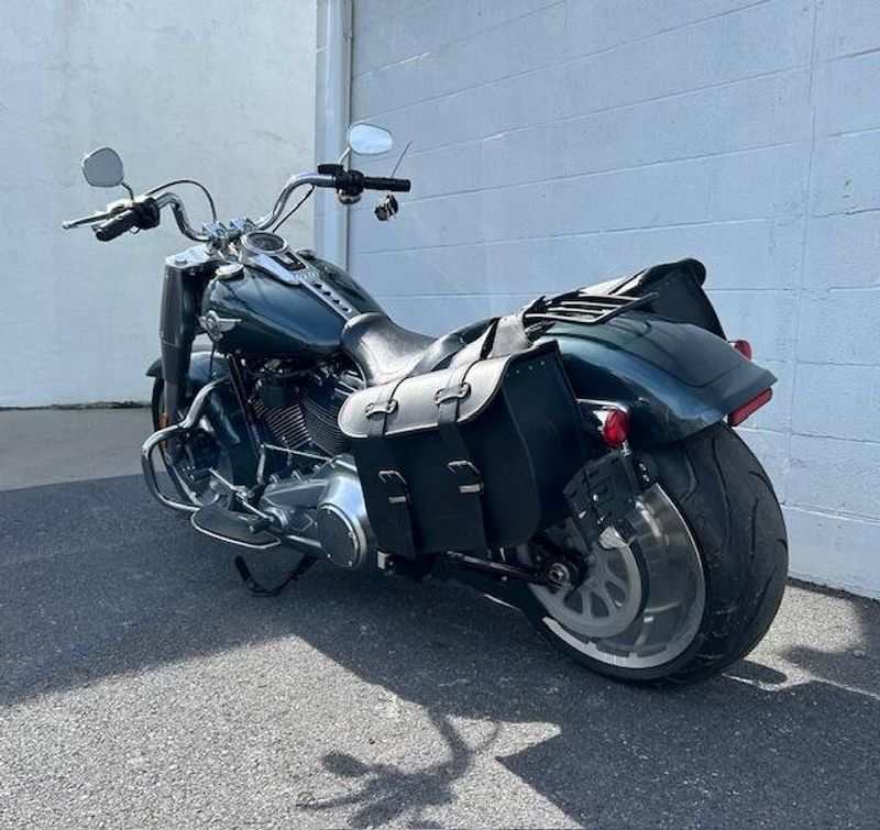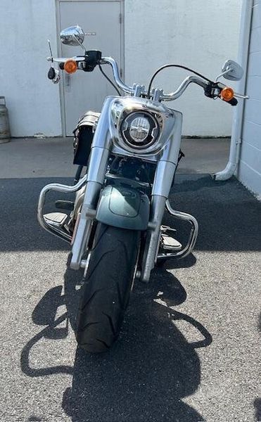 One owner Fat Boy in excellent condition with Stage 3 upgrade and tune. HD heated grips, leather saddle bags, mustache engine guards, 2 into 1 Bassani exhaust. Please view our walk around condition video!