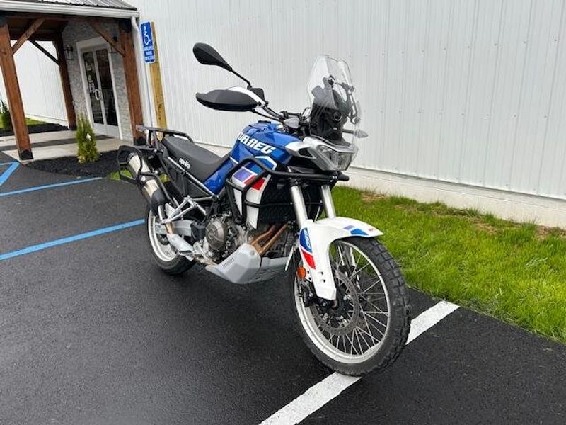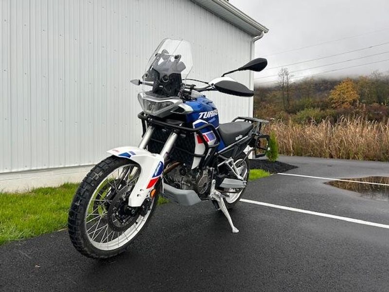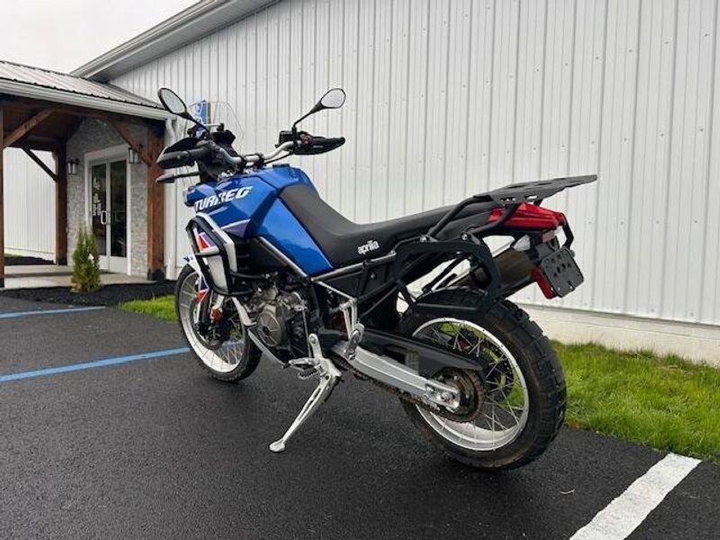 Immaculate condition with Aprilia factory warranty good through 6/13/26! Please view our walk around condition video. Two keys included. Altrider lowering link (factory link included). Motoguard crash bars, bag racks and tail rack.