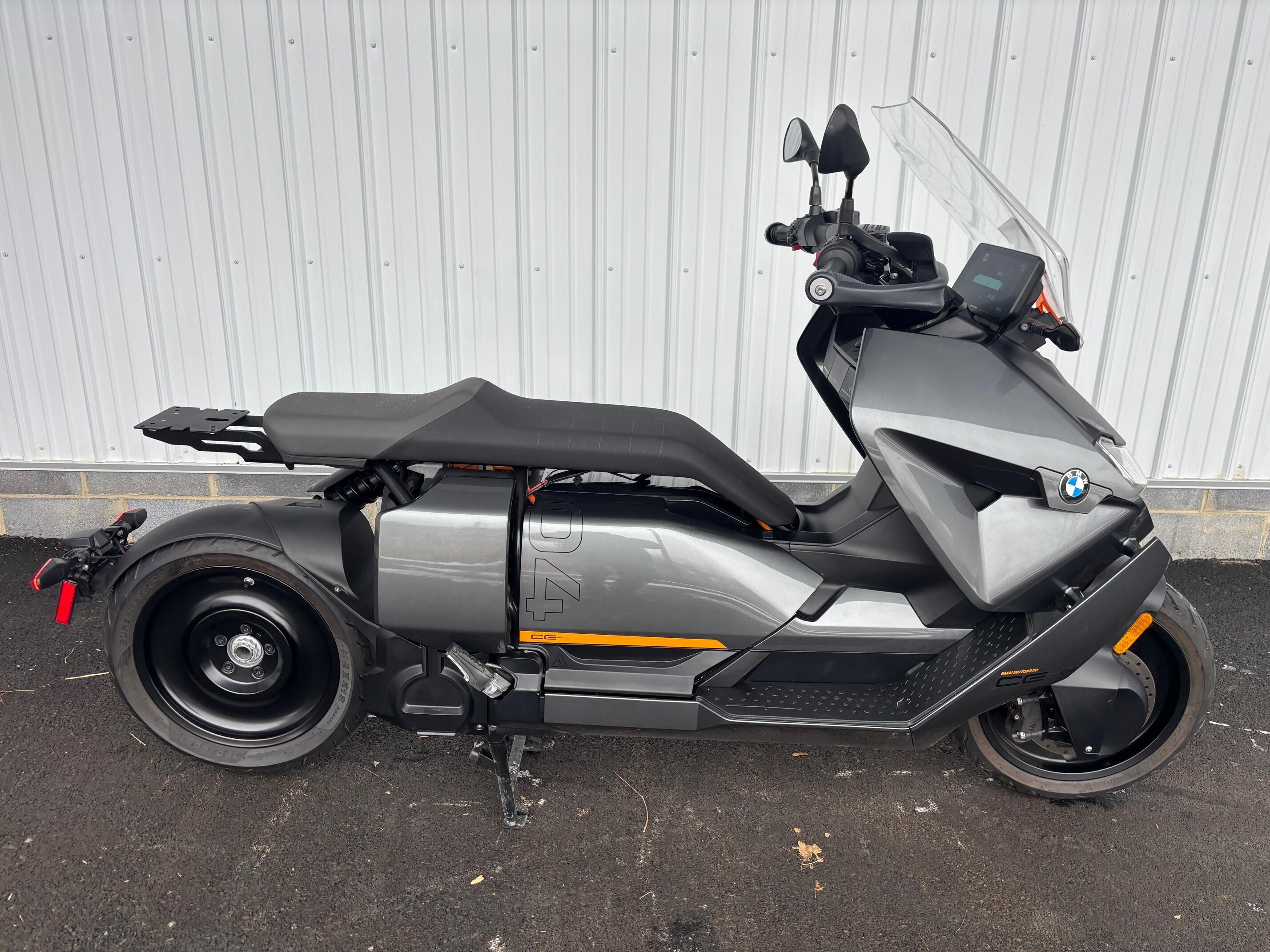Excellent condition CE04 originally sold at our dealership. Quick Charger, Heated Seat, High Windshield, Center Stand. Premium and Comfort Packages: Heated Grips, Comfort Seat with Backrest, Adaptive Headlight, Ride Modes Pro, ABS Pro, TPM. BMW factory warranty good until 9/30/27.