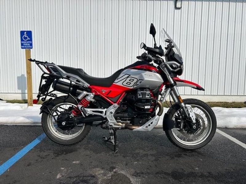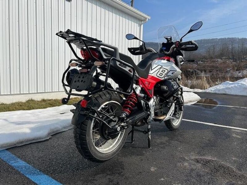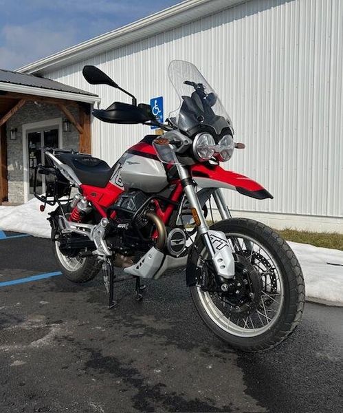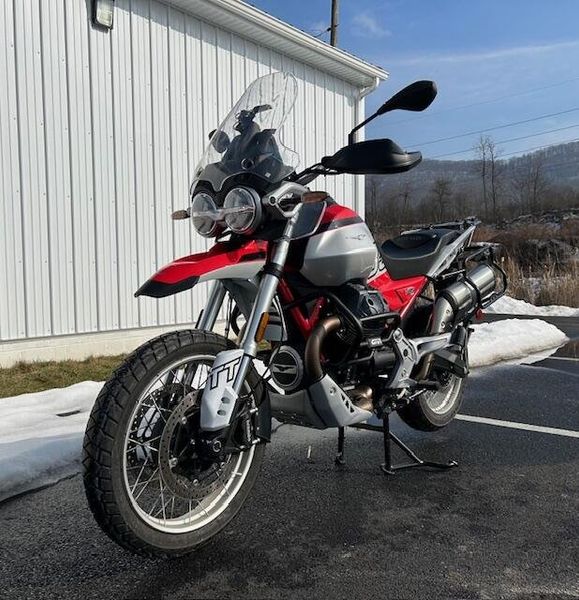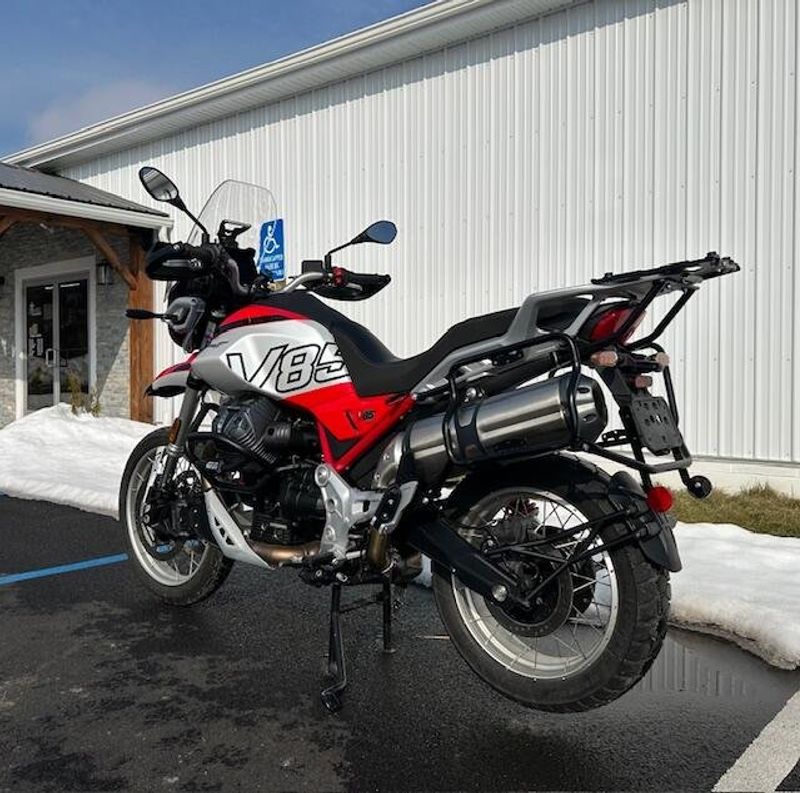 Mint condition V85 TT with included OEM accessories: touring windshield, lateral wind deflectors, center stand and rear splash guard. Bumot side case and top case racks. Quadlock phone mount. Givi engine guards. Pyramid Plastics front splash guard. Moto Guzzi factory warranty good through 7/27/27. Please view our walk around condition video!